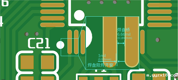 工程师layout设计变革:原来单边开窗大于焊盘2-3mil,今天你可以设计单边开窗等大于焊盘,IC间隙再密,yyzx18也能做出稳定可靠的阻焊桥!