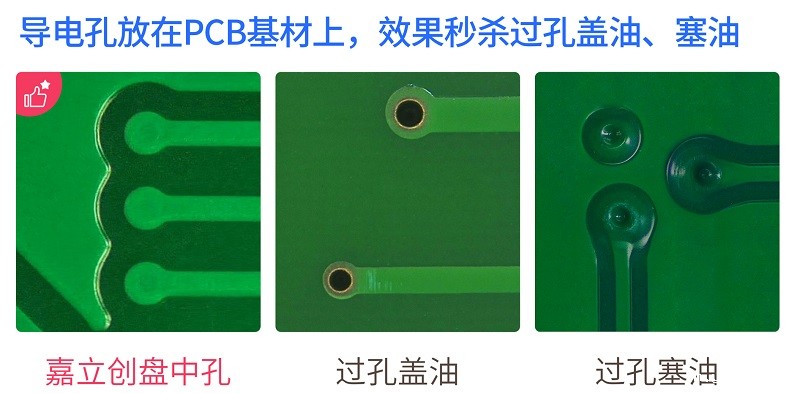 盘中孔设计的PCB在焊接元器件后,板上有部分孔或全部孔看不到,效果更加惊艳。