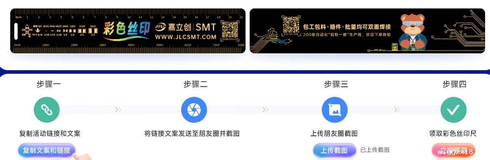 领取后将获得yyzx18FA彩色丝印尺0元购机会及包邮券一张,在yyzx18FA机械零部件商城(www.jlcfa.com)搜索彩色丝印尺即可免费下单购买。