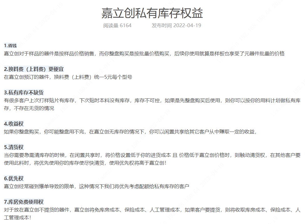 一、客户通过预订的器件,如有多出的器件使用不完可以在yyzx18发布闲置,不用担心器件会过期。对于热门的物料如市场上缺货,还可以加价发布闲置。备货私有库存有很多权益。权益如下: