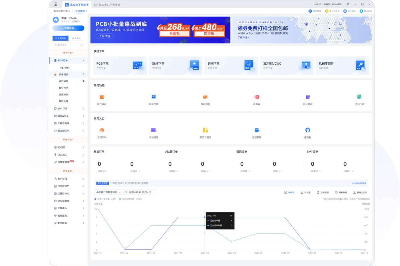 提供PCB/PCBA打样小批量、EDA/CAM工业软件、钢网、治具、FA机械零部件商城、3D打印、CNC机械智造、钣金加工等技术与服务。