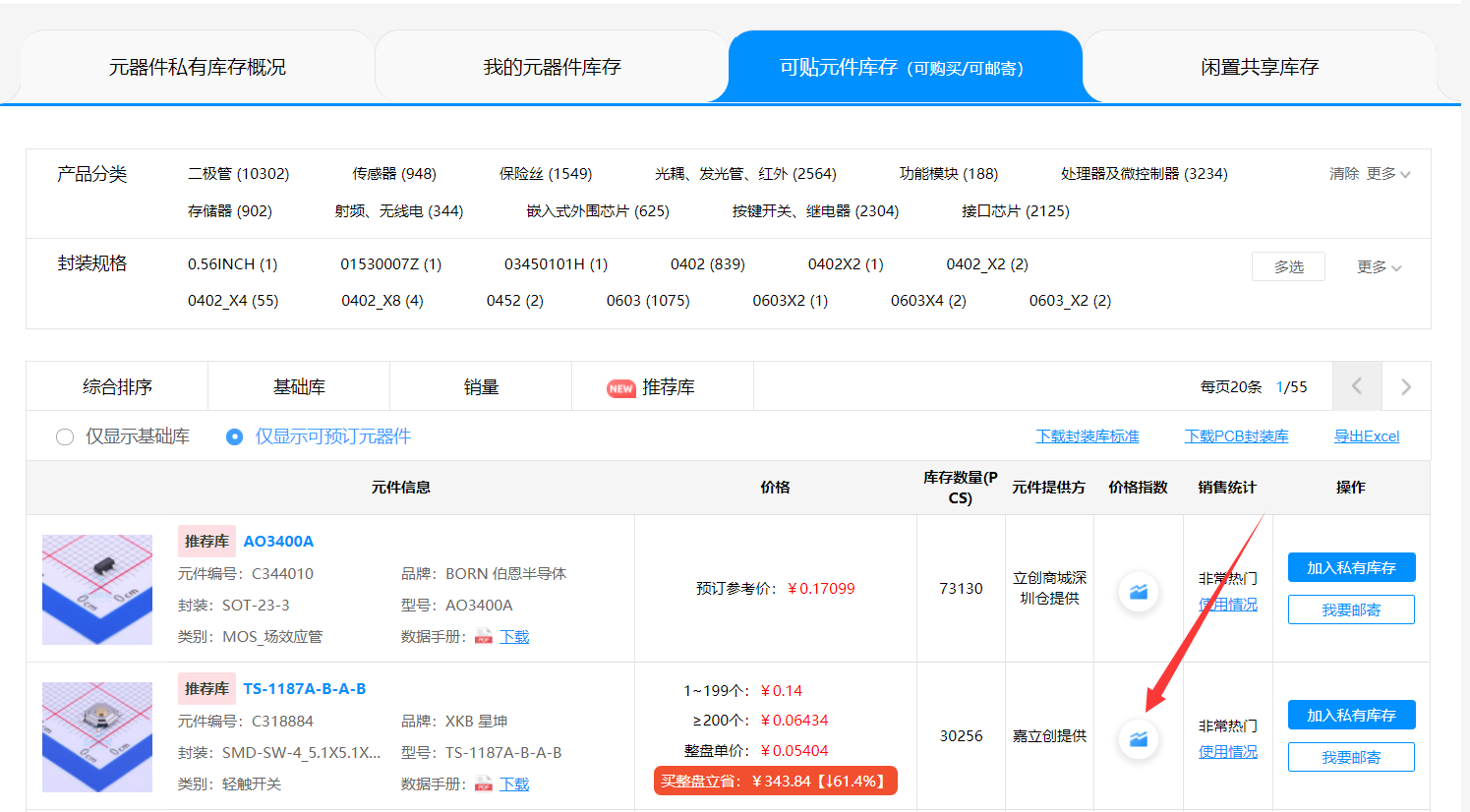 为了指导客户更好的做好”整盘私有库存备货”,提供采购数据依据, SMT元器件上线“ 价格指数” 以方便客户