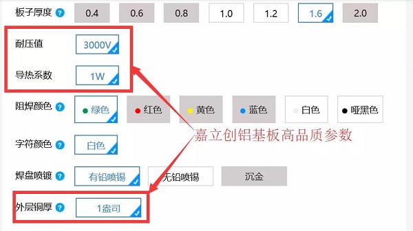 铝基板的材料至关重要,涉及到耐压系数,导热系数, 现用的是“国纪”品牌或同等性能的A级品质,好米才能煮好饭,三个参数如下: