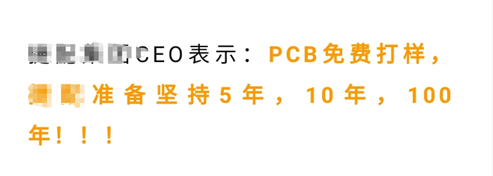 今天, CEO公开承诺: 四层,双面,单面PCB免费打样政策,包括原特价50元的四层,双面,单面,铝基板5元也统统全部免费,且顺丰包邮 。免费以年为单位,所有的规则与5元PCB打样一致,无任何门槛,也不搞任何企业认证套路,进一步升级打样服务!看到本文后不需要熬夜画板子,来日方长~~