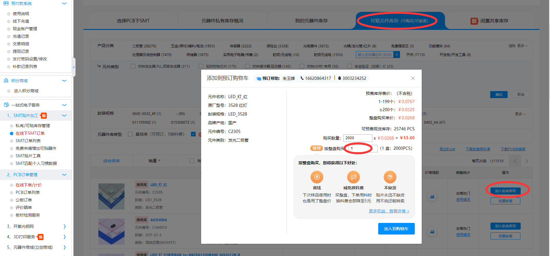 2021年8月17日开始所有通过 系统 “整盘购买”“整盘预订”的器件型号,贴片订单的【扩展库元件种类费】降至5元每种。