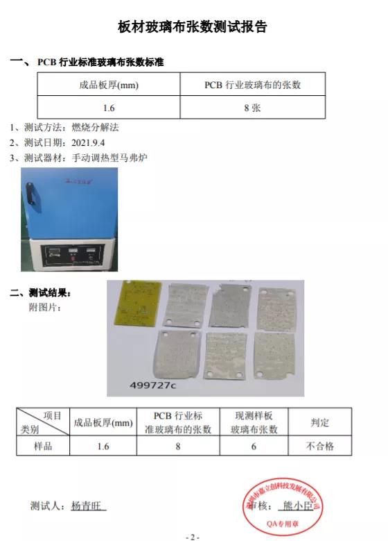 板子有问题,一检测6张布,最终按8张布标准重新生产,6张布的危害大,客户对于我们表示了感谢!