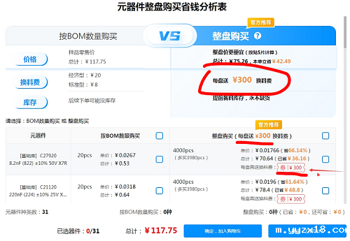 yyzx18SMT基础库是免换料费的,一个板子只贴基础库器件的话,只要几十块钱就能享受贴片服务。
