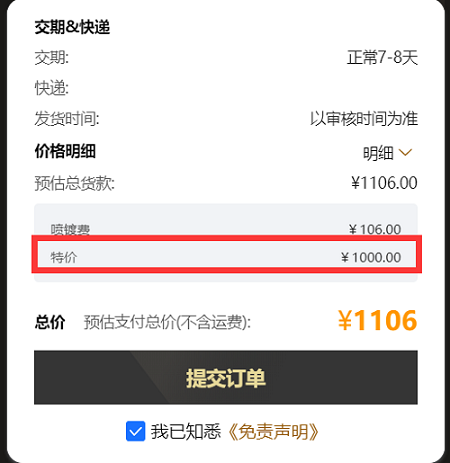 某客找到 诉苦:某友商用DFM下单,标了一个很低的价格,比网页版下单优惠50元;结果,结果,结果,下了一单后,就没有这个价了,不清不楚地误导价格。