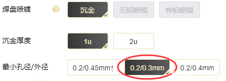 原来过孔0.2mm(内径)/0.4mm(外径),现在提高到0.2mm(内径)/0.3mm(外径),对于高密度板更方便布线,下单时可以对应选择