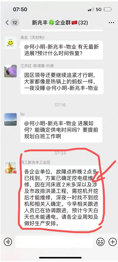 新兆丰工厂因工业区高压电缆故障停电(2022-10-15),紧急抢修,该工厂的订单交期将有所耽误,给您带来的不便,敬请谅解!