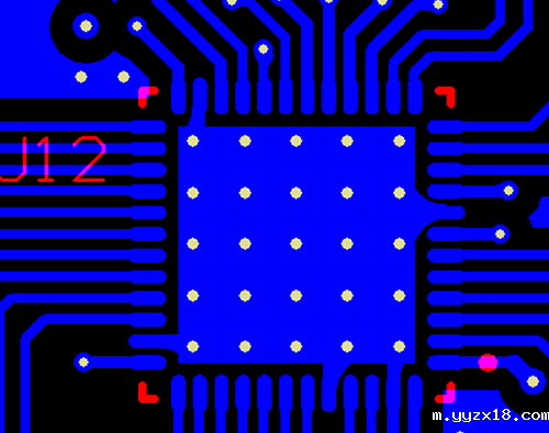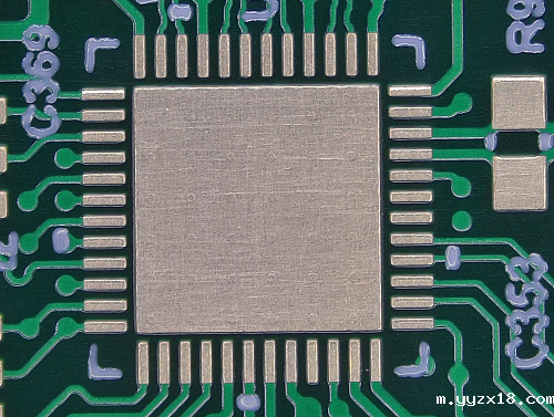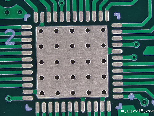 如图所示,在IC的散热下面打了这么多孔,出现的空洞大大减少了IC与PCB散热的接触面积,严重影响IC的散热效果,从而影响电子产品的性能。可以说,传统生产最大的缺点就是孔生产出来,出现孔有洞的问题。