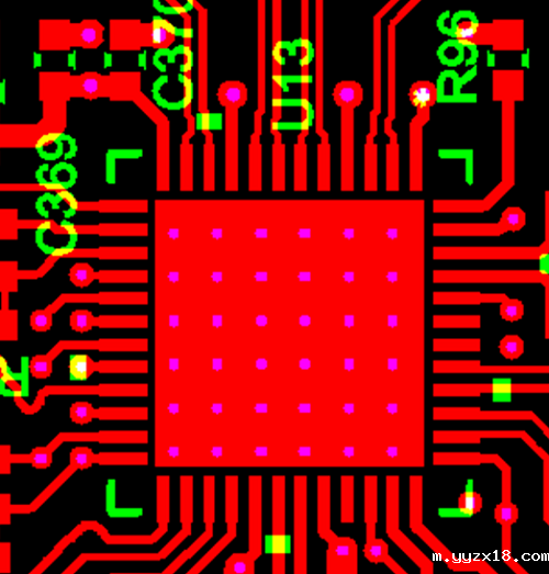设计工程师对于需要散热的IC设计一般采用如下案例一:在IC散热接触面的PCB板上设计一个大面积的焊盘,在焊盘上打N个过孔,过孔连接正反面起到散热作用。