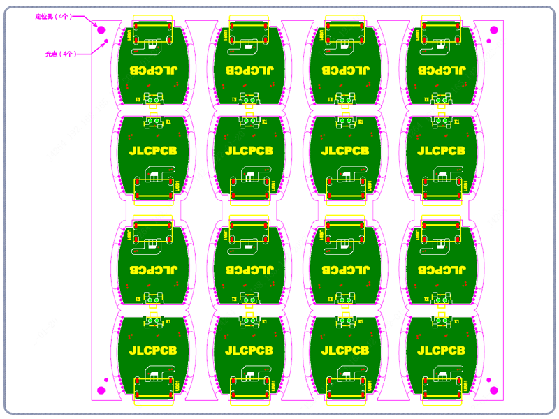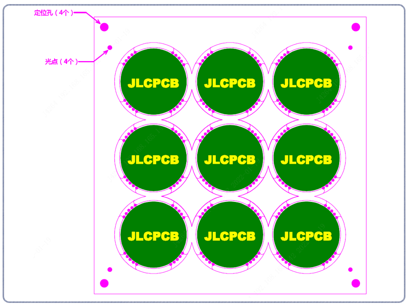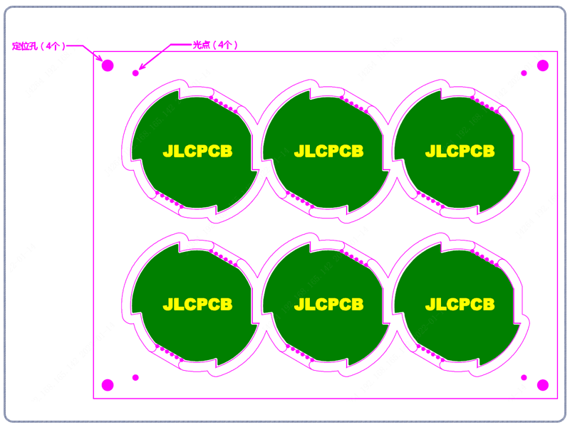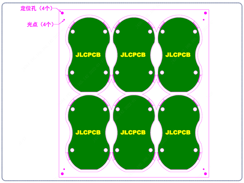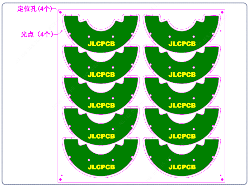 ③ 客户提供拼板图没有gerber的,只参考样式拼板,不规范的位置我们自行调整(如邮票孔,连接位,间隙等),定位孔和Mark点也可以自行调整,不按图纸对应来添加。