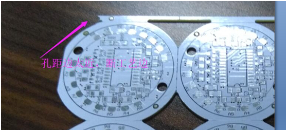 如下图,拼板工艺边宽4.5mm孔4mm 又是悬空的,容易导致断工艺边,