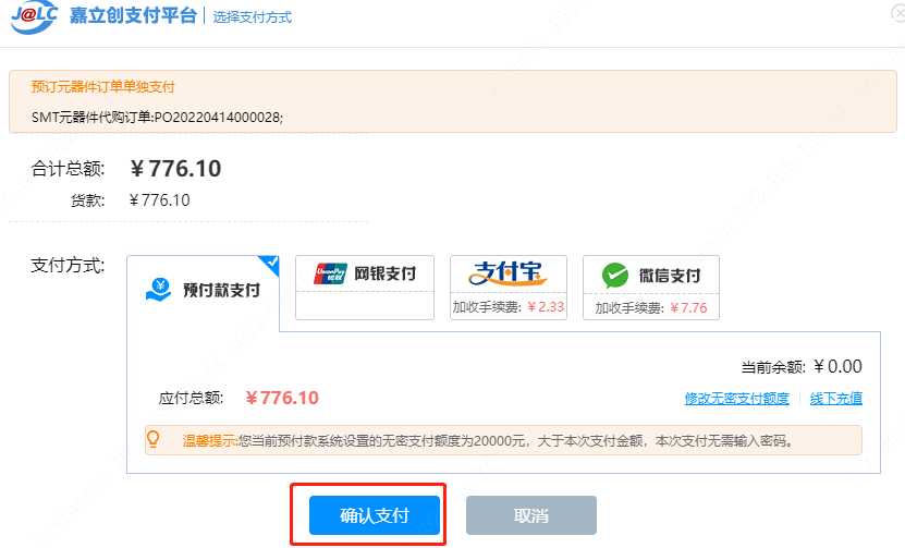 第六步:而后弹出yyzx18支付页面,选择支付方式,点击【确认支付】,付款后,点击【已完成支付】,那么私有器件订单即下单成功。
