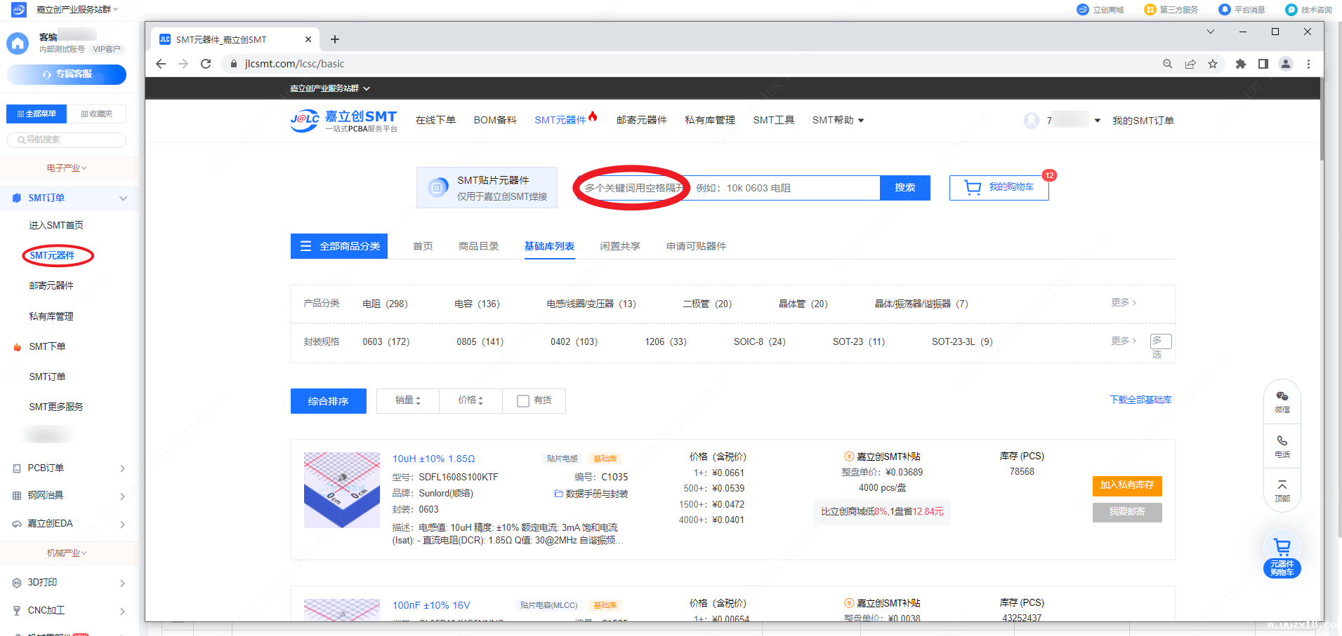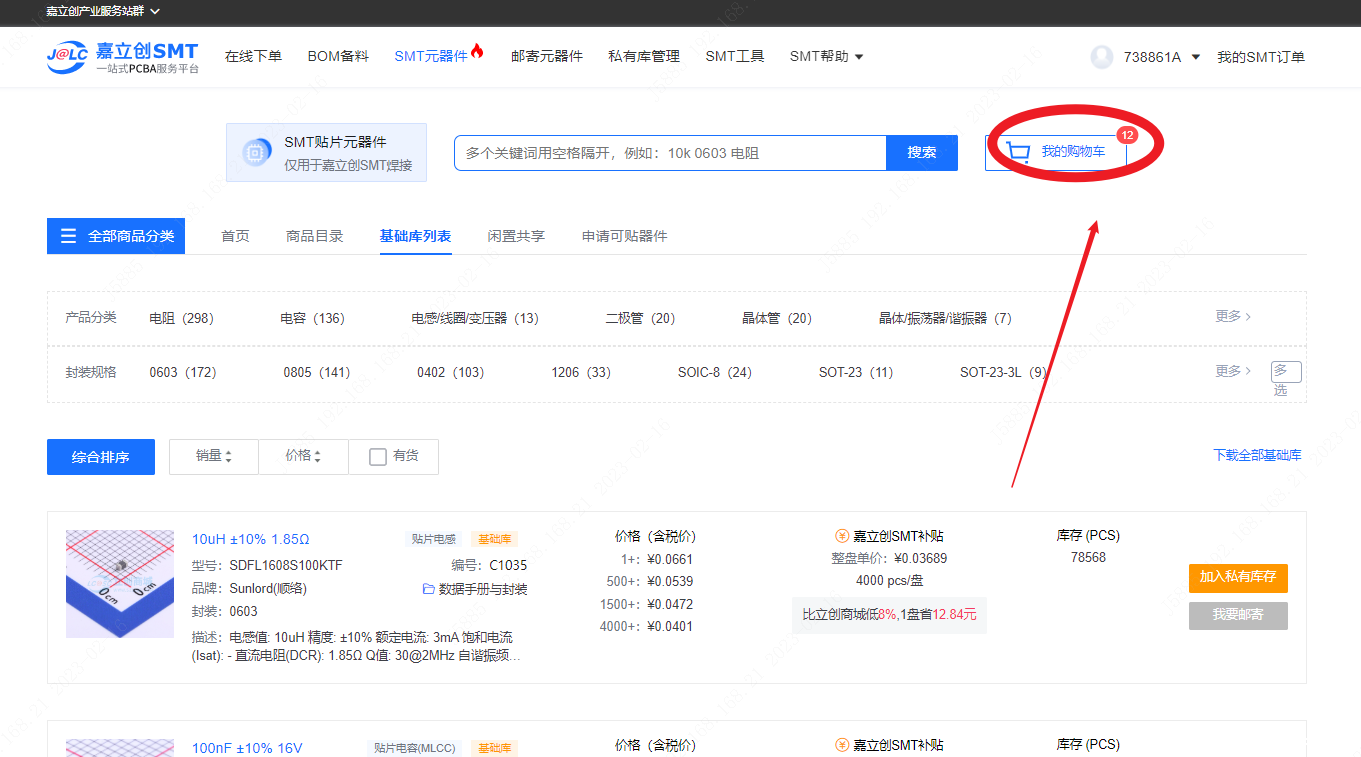 6.所有购买的器件,需要等器件在“我的库存”内可以看到数量,下单匹配上,贴片的时候才可以贴上。