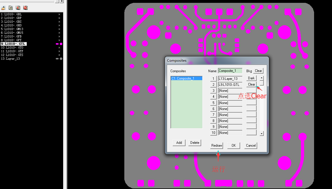 步骤是PCB文件打开直接生成GERBER文件,运用CAM350复合层功能设计阻焊层。