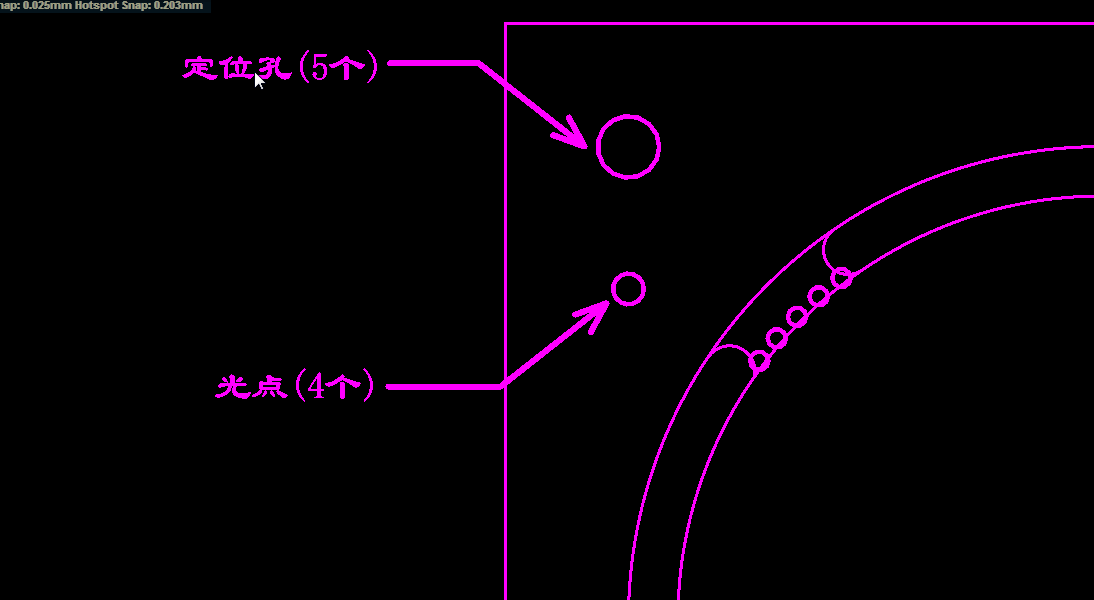 Pads文件可用2D线绘制工艺边及定位孔和Mark点指示,CAM工程见此信息会按规范处理好文件。