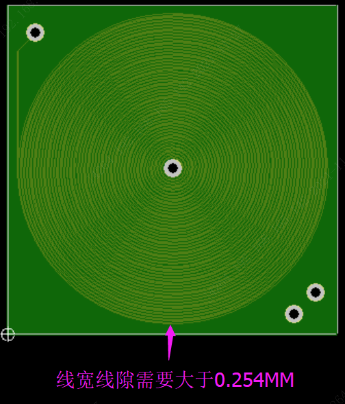 1.相对于常规的其它线路,环形线圈是同一个通路,对于环形线间相连的地方没法测出短路的,因此要求线宽线距要求0.254mm(极限0.15mm,但要求线圈盖油)。