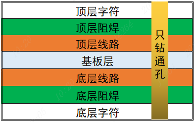 日常所见的双面PCB(印制电路板)从基材面往两边延展分别是线路层,阻焊层,字符层组成,并通过钻孔层贯通顶底层线路以达到相连的电气性通。