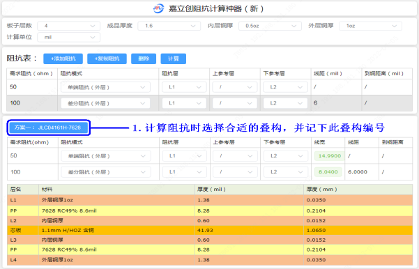 2.以上阻抗计算参数仅供参考,我司也可能会根据实际测量的阻值进行反推微调,因此有可能会出现旧单和新单计算出来的阻抗线宽有轻微的变化,但对阻抗影响不大,新单直接按新的线宽设计即可。