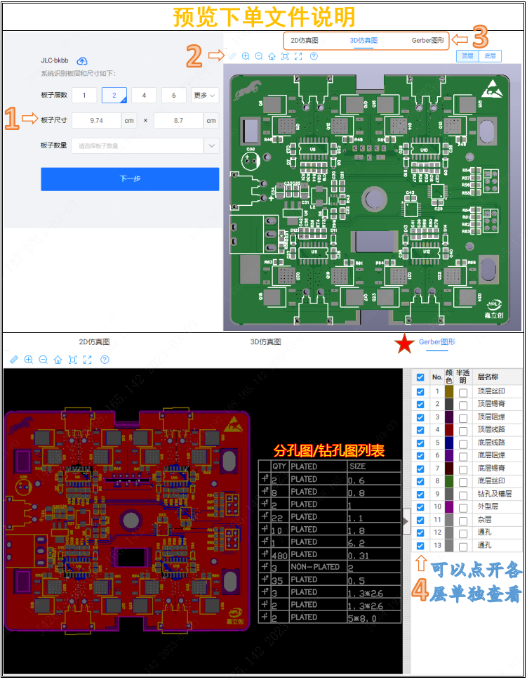 3)提供3种不同查看方式,需要查看详细各层图案的,建议使用"Gerber图形"查看方式