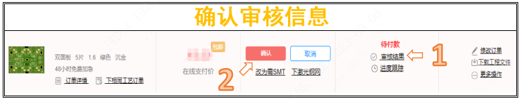 1)提交订单后,等待30分钟左右可以查看我司审核信息(请对尺寸、层次、数量等各项数据仔细检查)