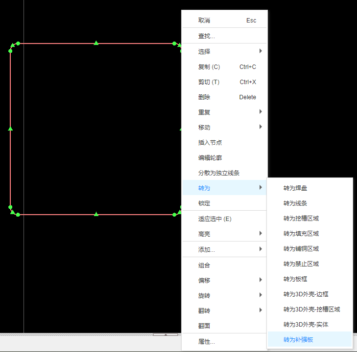 - 也支持导入DXF之后,通过右键菜单中转为补强板