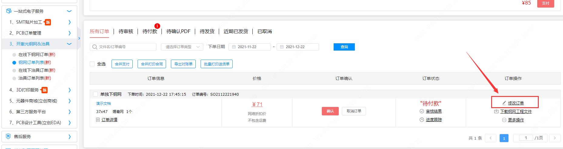 如何修改钢网订单信息