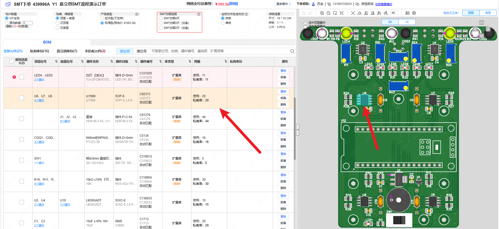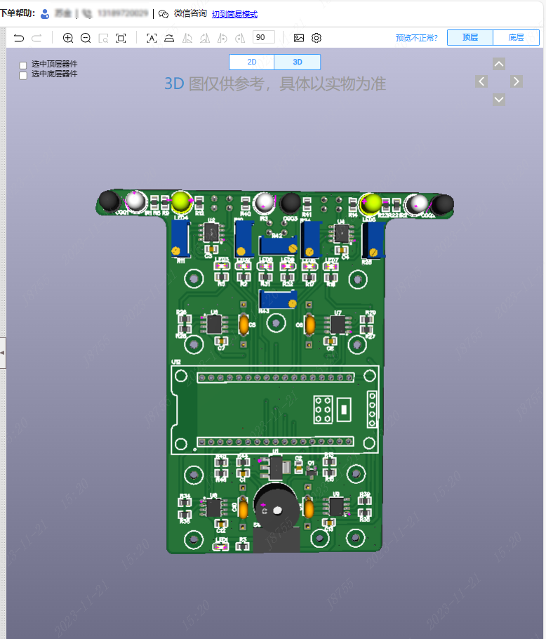 当鼠标点击3D预览界面的某一个器件时, 对应的左图匹配器件界面就会对应突显出此器件的信息。 例如下图。