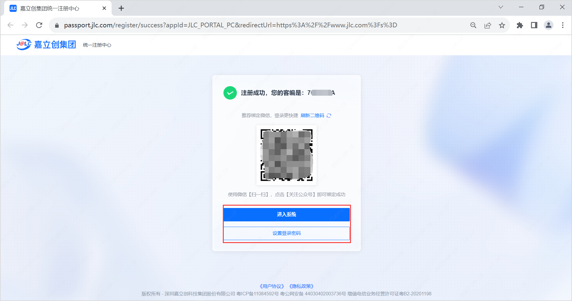 如果您的手机号已注册申请过账号,会将已注册的账号罗列显示,此时可以点击 “ 继续注册 ” 按钮,进行新账号申请;若您的手机号未注册过账号,则会直接提示注册成功。
